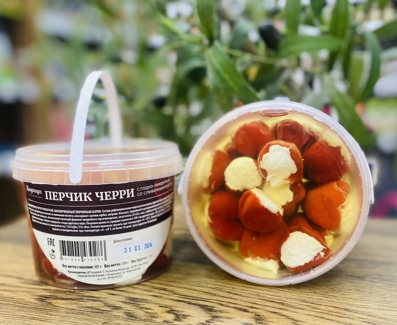 Перец черри красный фаршированный мягким сыром